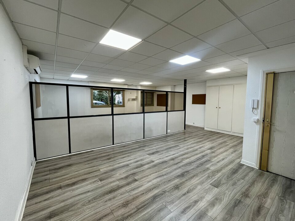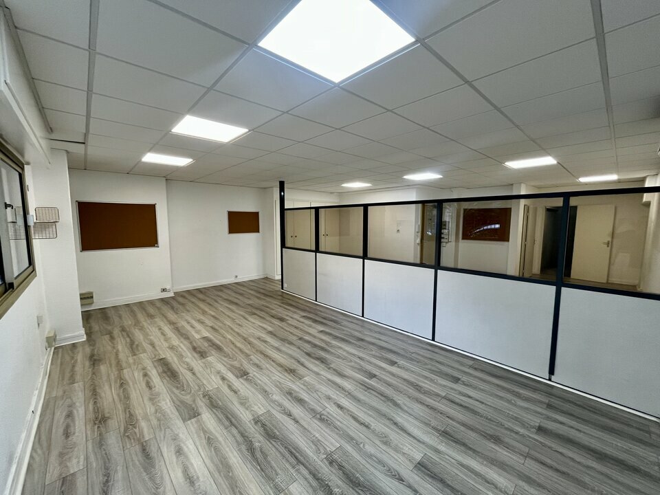 BUREAUX en rez-de-chaussée de 65m² en bon état général offrant une belle surface en open-space, un espace archives/stockage de 5m² et des sanitaires privatifs.