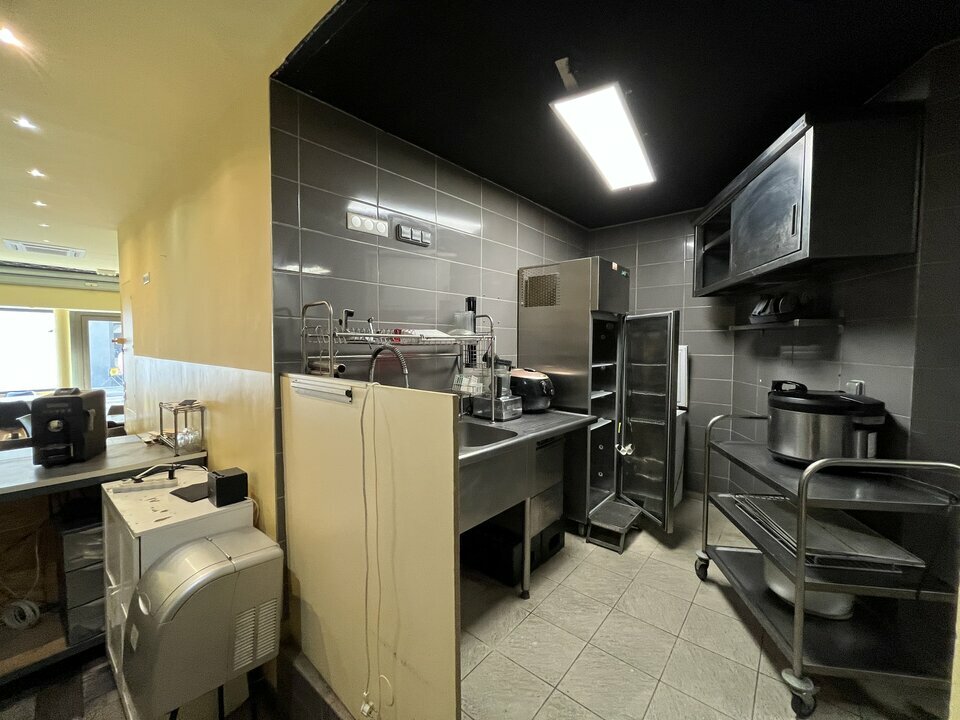 Surface de 77m² en rdc et réserve de 25m² en sous-sol directement accessible par le local. Capacité de 45 couverts environ.