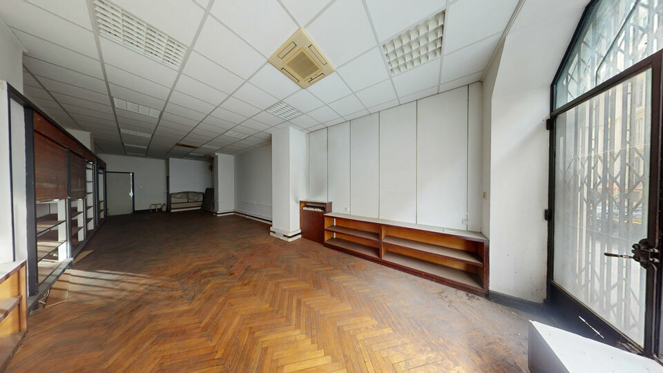 Surface de 58m², 3m d'hauteur sous plafond. Sanitaires et lave main.