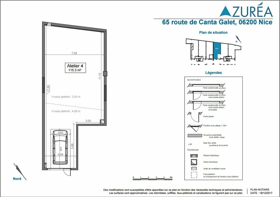Nice CANTA GALET, local d'activités d'une surface de 115 m2 de plain pied, composé d'un espace de stockage, bureaux avec salle d'eau et WC.